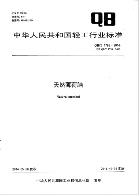 QBT1793-2014自然薄荷脑