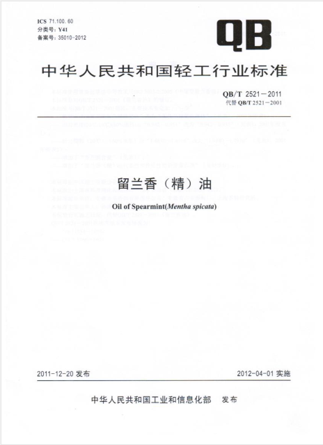 QBT2521-2011留兰香(精)油