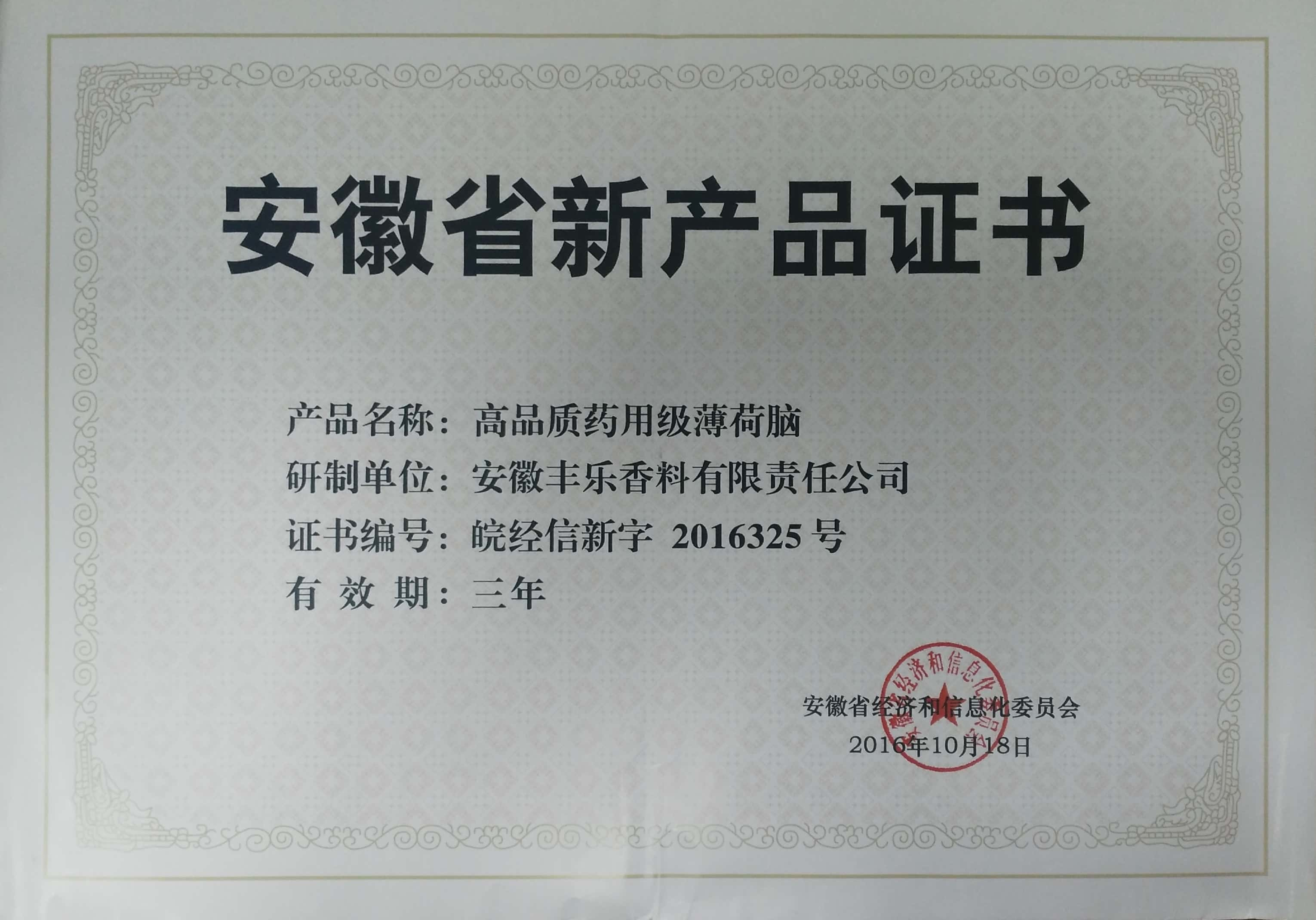2016年-安徽名牌产品(东升国际官网牌自然薄荷脑)